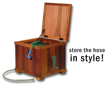 Another great Baldwin product. A beautiful cedar box to hide the garden hose. Includes a 75 foot capacity hose reel.
